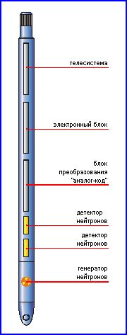 Цифровой скважинный прибор двухзондового импульсного нейтрон-нейтронного каротажа ЦСП-2ИННК-43 ЦСП-2ИННК-43 предназначен для определения нейтронных характеристик горных пород и оценки текущей нефтегазонасыщенности коллекторов через определение времени жизни тепловых нейтронов (эффективного сечения захвата), а также определения коэффициента водонасыщенной пористости. Скважинные приборы ЦСП-2ИННК-43 и ЦСП-2ИНГК-43М могут использоваться для решения задач контроля за разработкой нефтегазовых месторождений и оценки текущей нефтегазонасыщенности в эксплуатационных скважинах через НКТ, при условии высокой минерализации пластовых вод. Применение данного прибора в отличие от прибора импульсного нейтронного гамма-каротажа ЦСП-2ИНГК-43М эффективно в породах с высокой естественной радиоактивностью и отложениями радиоактивных солей в скважинах. Приборы ЦСП-2ИНГК-43М и ЦСП-2ИННК-43 могут стыковаться с модулем локатора муфт с каналом гамма-каротажа ЛМ-ГК-43. Скважинный прибор работает с каротажными регистраторами «Гектор», «Вулкан V3». Эксплуатируется с одножильным и трехжильным кабелем. Технические характеристики: Диапазон измерения времени жизни тепловых нейтронов: 50-1000 мкс Относительная погрешность определения времени жизни тепловых нейтронов: ± 2% Диапазон измерения водонасыщенной пористости: 1-40% Тип применяемого импульсного генератора нейтронов: ИНГ-10-20-120, ИНГ-10-20-150 Количество/ ширина временных каналов: 2×64 / 40 мкс Напряжение питания прибора: 150 В Длины зондов: 40, 60 / 30, 70 см Максимальная рабочая температура: 120/150 °С Максимальное гидростатическое давление: 100 МПа Диаметр: 43 мм; Длина: 3300 мм Вес: не более 25 кг Цена: по запросу