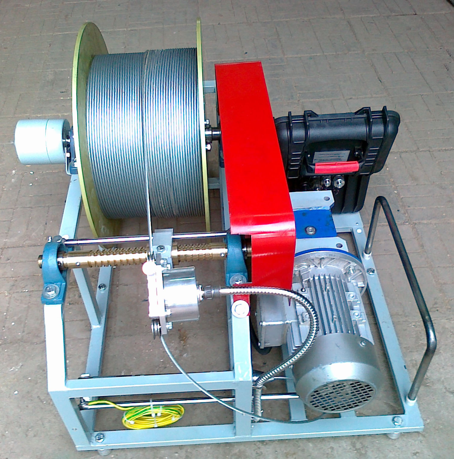 Каротажная лебедка СПО-П-1000 предназначена для проведения спускоподъемных операций при геофизических исследованиях (ГИС) в вертикальных и наклонных скважинах с углом наклона до 45°. В комплекте с каротажным регистратором, ноутбуком с программным обеспечением для регистрации данных ГИС, а также электрогенератором мощностью от 5 кВт, СПО-П-500 выступает полноценной автономной возимой каротажной станцией для исследования скважин различного назначения глубиной до 1000 м. Комплектность СПО-П-1000: • мотор-редуктор; • электрический коллектор; • устьевой ролик; • 5-мм 3-жильный кабель КГЛ 3-0,2-15-150 - до 1000 м; • стандартный кабельный наконечник НКБ 3-36; • пульт управления в составе частотного преобразователя, устройства контроля каротажа, встроенной системы контроля глубины «Ясон» в пыле- и влагонепроницаемом корпусе (класс защиты IP66); • механический кабелеукладчик; • механическое тормозное устройство. Технические характеристики: Диапазон скоростей движения кабеля на среднем диаметре намотки на барабан: 20-1200 м/ч Мощность электродвигателя: 1,1 кВт Напряжение питания от сети переменного тока: 220 В Передаточное число редуктора: 50-80 Максимальная вместимость барабана лебедки (диаметр кабеля до 5 мм): 1000 м Вес 100 м кабеля марки КГЛ 3-0,2-15-150: не более 10 кг Тяговое усилие кабеля на середине барабана: 1000 Н Габаритные размеры, не более: длина: 800 мм ширина: 800 мм высота: 600 мм Вес без кабеля, не более: 120 кг Цена: по запросу