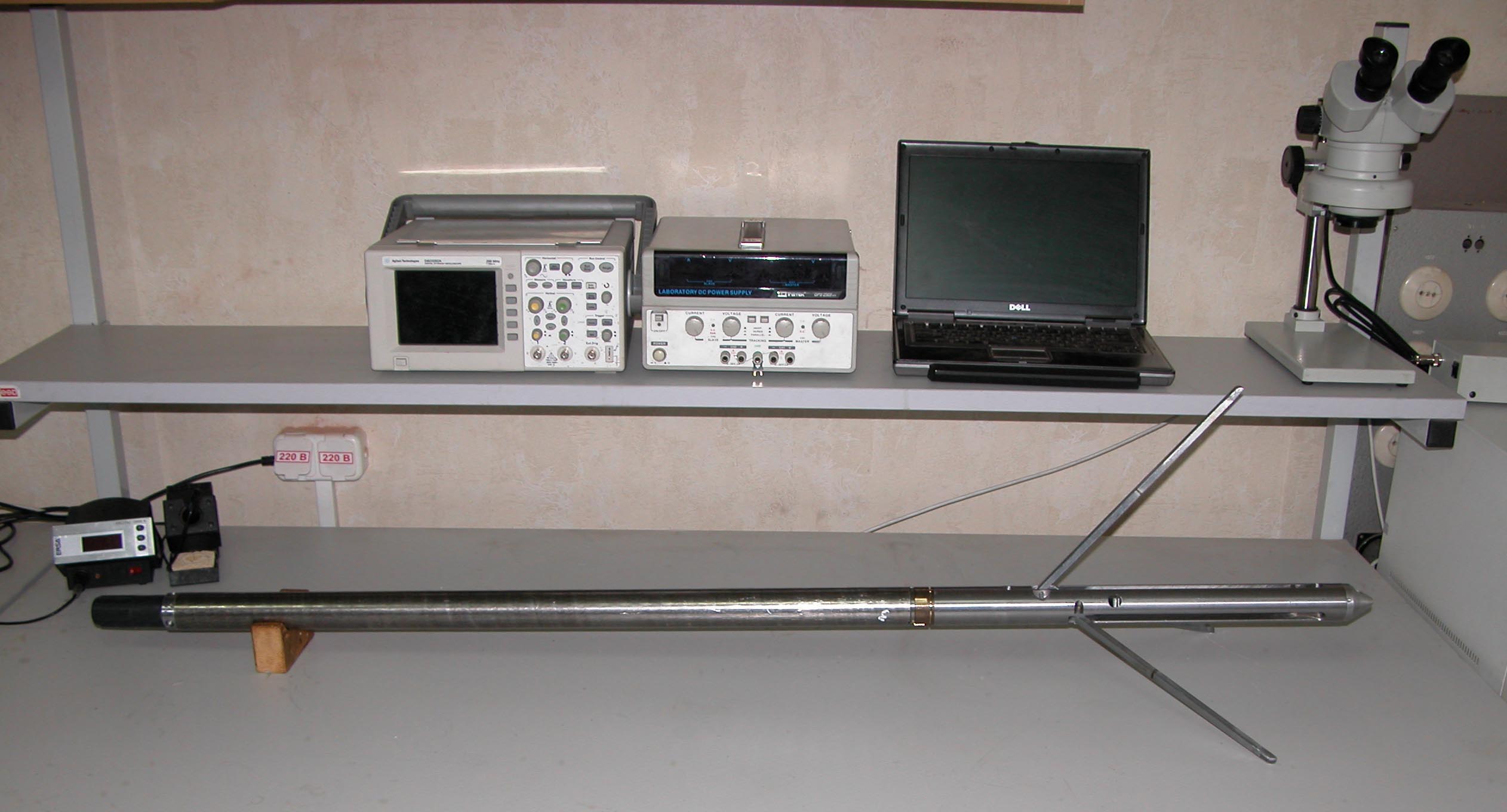 Каверномер скважинный управляемый КМ-43-1 Предназначен для измерения диаметра рудных, угольных и гидрогеологических скважин. Скважинный прибор работает с каротажным регистратором «Вулкан V3» или «Кедр-02». Эксплуатируется с одножильным или трехжильным каротажным кабелем. Достоинства и преимущества • возможность дистанционного управления раскрытием и закрытием измерительной 3-х рычажной системы с помощью электродвигателя с редуктором; • малый диаметр прибора без заполнения трансформаторным маслом; • оригинальная система компенсации гидростатического давления. Технические характеристики Диапазон измеряемых диаметров скважин: 50-400 мм Абсолютная погрешность измерения: ± 4 мм Раскрытие и закрытие рычагов: многократное Максимальная рабочая температура: 80 градусов С Максимальное гидростатическое давление: 20 МПа Напряжение питания: 50-70 В Длина: 1600 мм Диаметр: 43 мм Вес: 10 кг