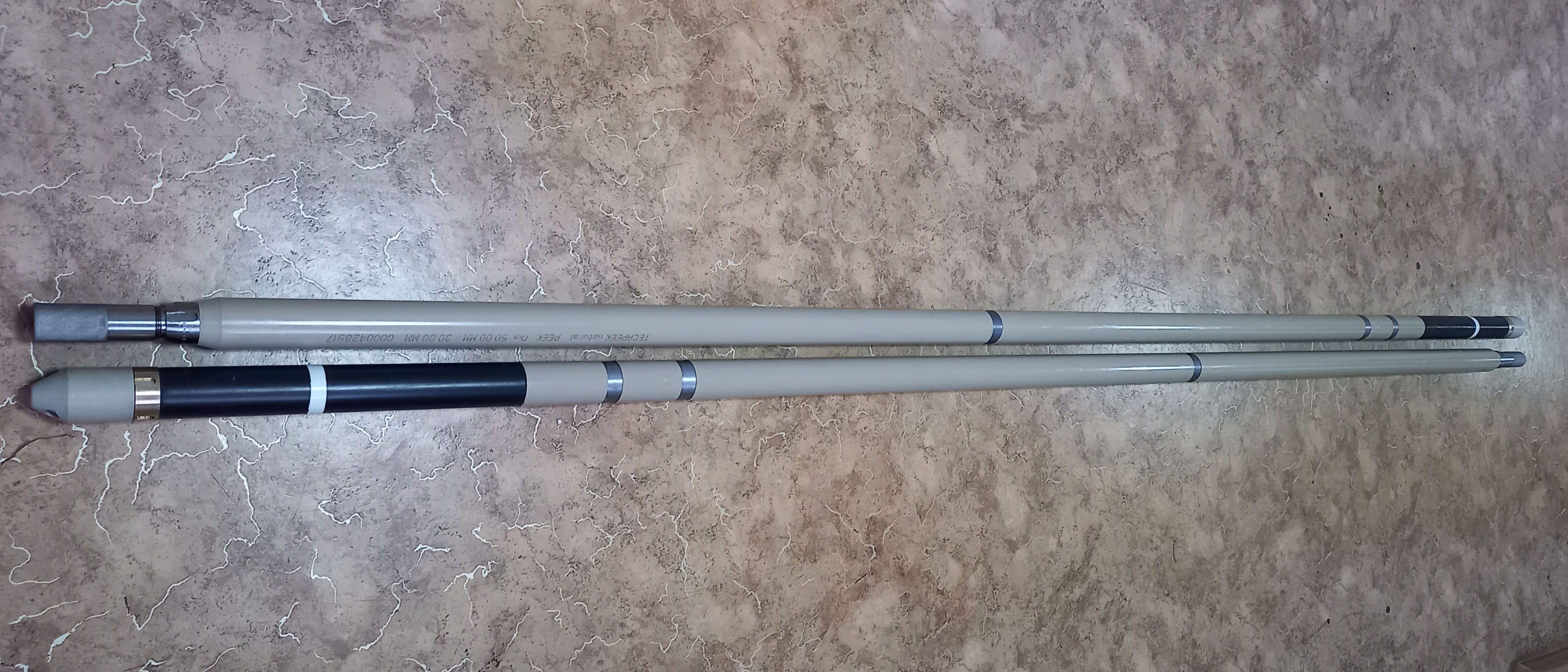 Комплексный скважинный прибор электрического и гамма-каротажа КСП-ГК-43 Предназначен для измерения кажущегося электрического сопротивления (КС) с одновременным и принудительным переключением конфигурации зондов (градиент зонд – потенциал зонд), потенциала самопроизвольной поляризации (ПС) и мощности экспозиционной дозы (МЭД) гамма-излучения горных пород в условиях естественного залегания. Предназначен для работы с каротажным регистратором «Вулкан V3». Эксплуатируется с одножильным (ограничение на запись ПС) и трехжильным каротажным кабелем. Размеры зонда изготавливаются по заявке заказчика. Прибор для исследований на месторождениях урана изготавливается по заявке заказчика (технические характеристики в скобках). Технические характеристики Формула зонда: градиент-зонд: А 1,0 M 0,1 N потенциал-зонд: N 1,0 M 0,1 A Диапазон измерения КС: 1-5000 Ом м Диапазон измерения ПС: ± 1000 мВ Диапазон измерения МЭД: 5-500 (5-10000) мкР/ч Тип и размер детектора измерения МЭД: NaI(Tl) 18х160 (30х70) мм Основная относительная погрешность измерений КС, ПС: 5% Основная относительная погрешность измерений МЭД: 10% Напряжение питания: 50-60 В Максимальная рабочая температура: 80 °С Максимальное гидростатическое давление: 20 МПа Диаметр: 43 (52) мм Длина прибора, не более: 3000 мм Вес прибора, не более: 15 кг