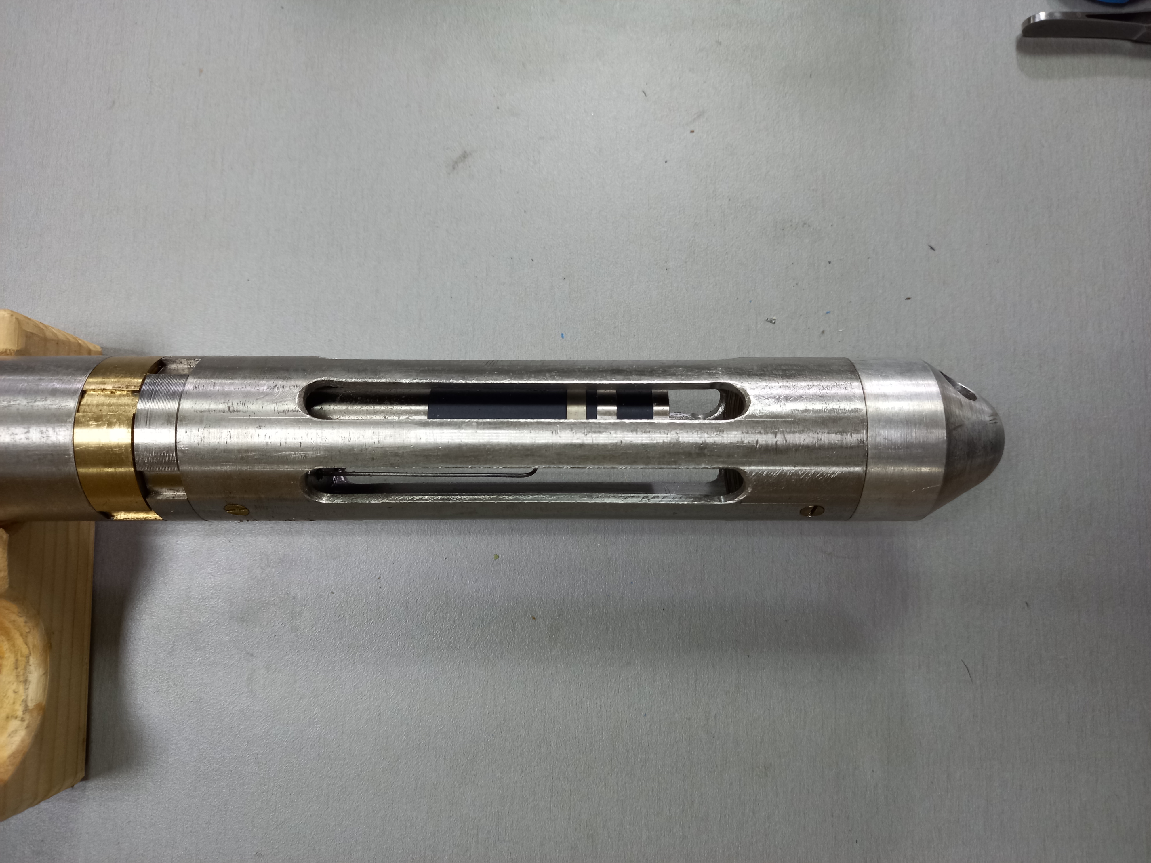 Комплексный скважинный прибор гамма-каротажа, термометрии и резистивиметрии ГТР-43 Предназначен для измерения удельного электрического сопротивления (УЭС) и температуры жидкости, заполняющей скважину, а также мощности экспозиционной дозы (МЭД) гамма-излучения в рудных, угольных и гидрогеологических скважинах. Прибор может выпускаться в модификациях: - с каналом спектрометрического гамма-каротажа (ТРГК-С-60); - без канала гамма-каротажа (ТР-43). Предназначен для работы с каротажным регистратором «Вулкан V3». Эксплуатируется с одножильным и трехжильным каротажным кабелем. Технические характеристики Диапазон измерения МЭД: 5-500 мкР/ч Диапазон измерения УЭС: 0,1-50 Ом•м Диапазон измерения температуры: -10 - +80 °С Максимальная рабочая температура: 80 °С Максимальное гидростатическое давление: 20 МПа Напряжение питания: 50-60 В Диаметр: 43 мм (60 мм для ТРГК-С-60) Длина: 1500 мм (1000 мм для ТР-43) Вес: 7 кг (4 кг для ТР-43)
