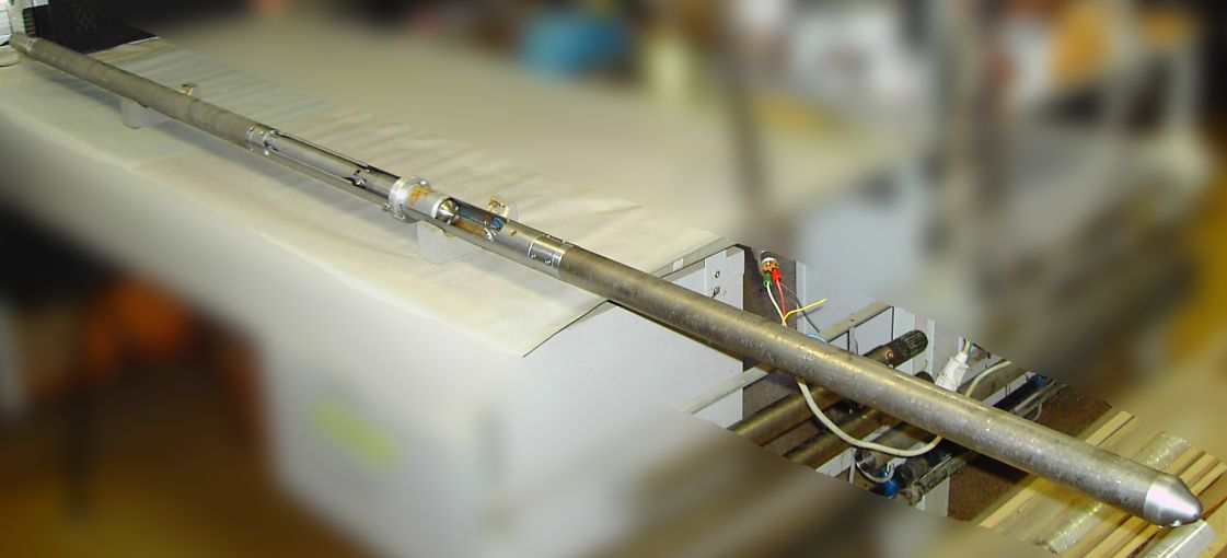 Скважинный прибор рентгенорадиометрического каротажа РРК-43 Прибор предназначен для измерения полных спектров характеристического рентгеновского излучения атомов элементов, входящих в состав горных пород и руд, в процессе исследования рудных, угольных, гидрогеологических и специальных скважин. Прибор обеспечивает количественное определение содержаний химических элементов в пластах, пересеченных скважинами. Скважинный прибор работает с каротажным регистратором «Вулкан V3». Эксплуатируется с трехжильным каротажным кабелем. Технические характеристики Количество измерительных каналов: 256 Тип детектора: счетчик пропорциональный СИ-12Р Энергетическое разрешение по линии 5,9 кэВ, не более: 20% Диапазон измерения рентгеновского излучения: 0,2-40 кэВ Рекомендуемый источник гамма-излучения Cd-109: ИРИК-Д Номинальное напряжение питания прибора: 65±5 В Усилие прижатия зонда, не менее: 80 Н Максимальное раскрытие зонда, не менее: 200 мм Формат передачи данных: Манчестер-2 Диапазон рабочих температур: -10 - +80 °С Максимальное гидростатическое давление: 20 МПа Диаметр прибора: 43 мм Длина прибора, не более: 1100 мм Вес, не более: 10 кг Цена: по запросу